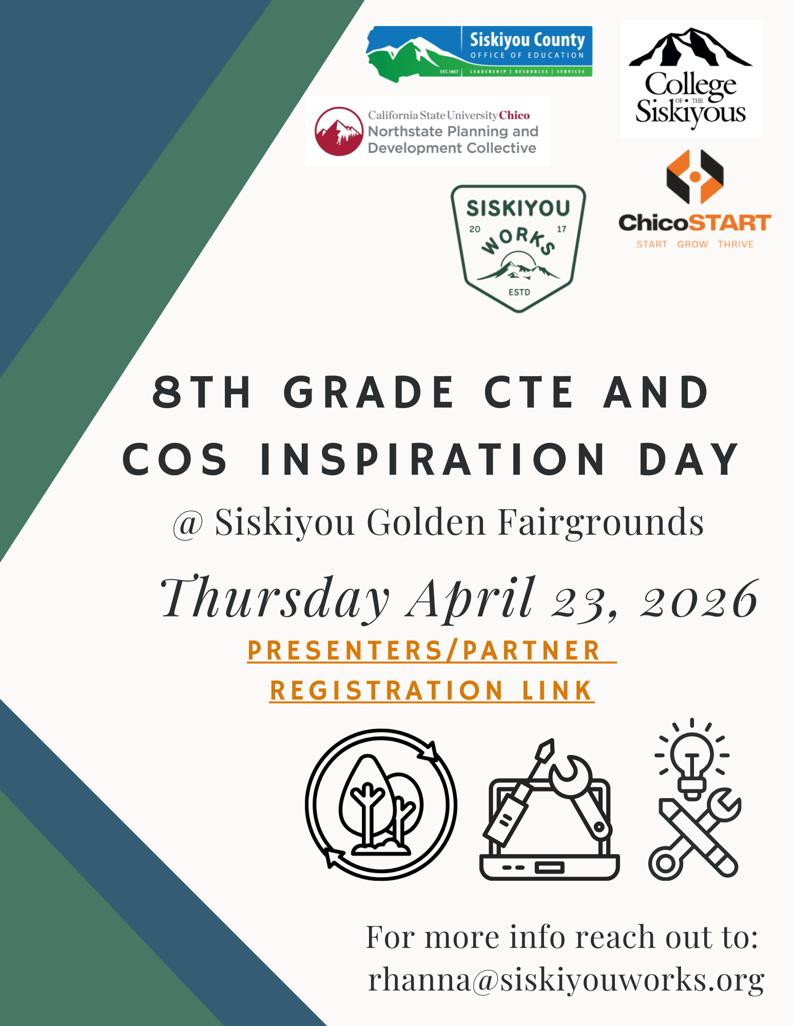 High School Career Technical Education (CTE) students, Industry Partners, Organizations, and Agencies sign up today for a booth at our event. We’d love for our county 8th graders to interact with your industry/work. Sign up today at this link: Exhibitor Registration